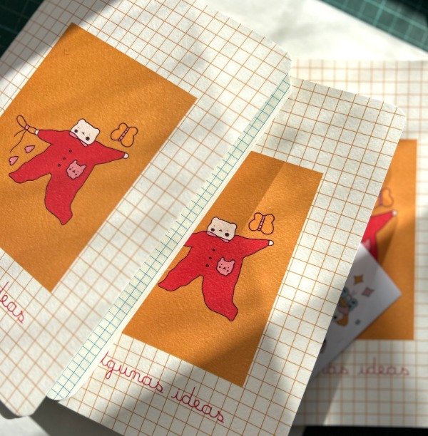 Tiene dibujos , espacios para notas , hojas rayadas y cuadriculadas 28 hojas Bookcel 80 gr